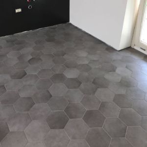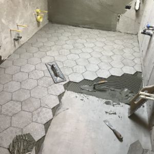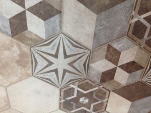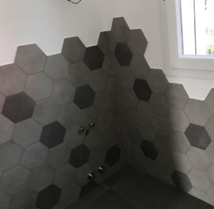 Pavimento e rivestimento bagno con esagona e tozzetto