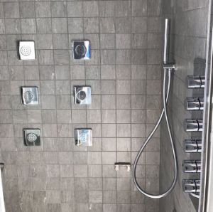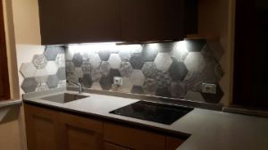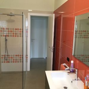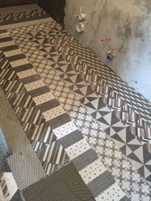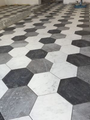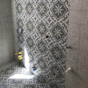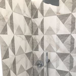 Pavimento e rivestimento bagno con esagona e tozzetto