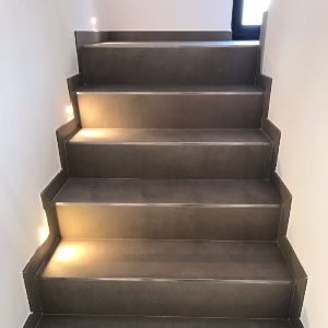 Bellissima ristrutturazione con l'utilizzo di un gres porcellanato effetto legno serie Treverktrend colore Tortora , e la realizzazione di un rivestimento scala completo di alzata e pedata con gres porcellanato serie Powder colore Mud della ceramica Marazzi